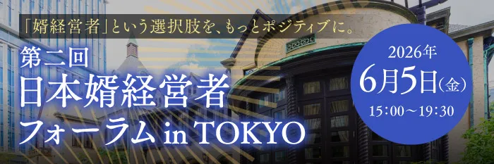 昨年の第一回フォーラムでは、全国各地から参加した経営者たちが集まり、有意義な交流が行われました。「孤独感が解消された」「事業承継に関する具体的なヒントを得られた」といった声が多く寄せられました。今回は、開催地を東京に移し、事業変革を達成した経営者をゲストとして迎え、さらに多彩な視点で今後の「婿経営」を議論します。