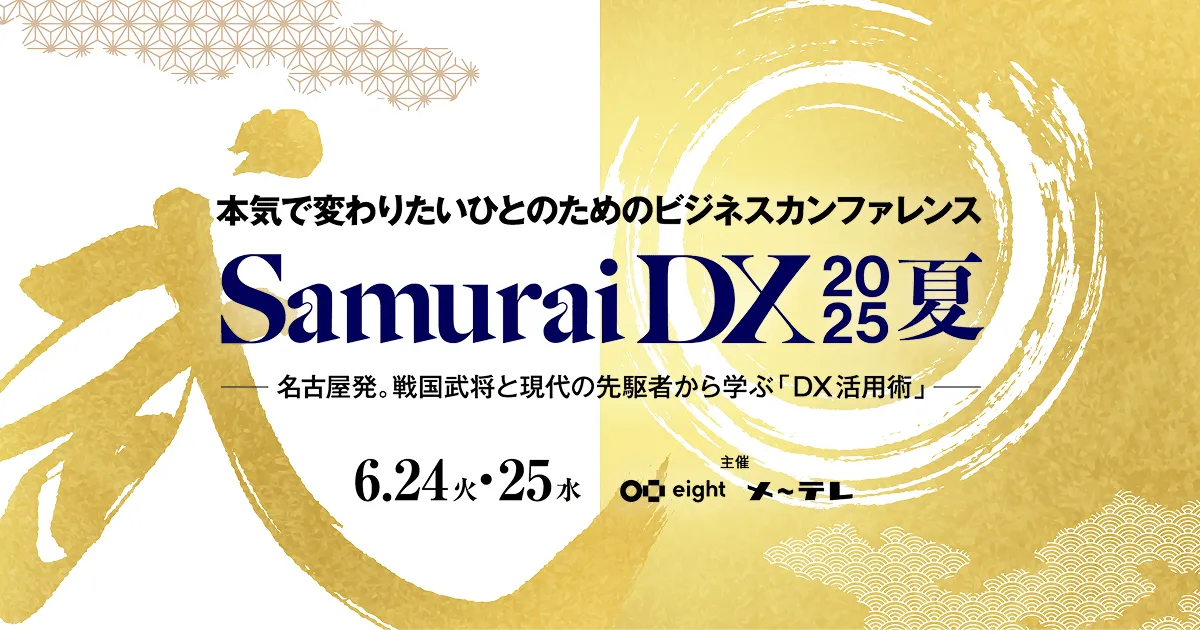 2025年の6月24日と25日、名古屋テレビ放送(メ~テレ)とSansan株式会社の名刺アプリ「Eight」が共に主催するビジネスカンファレンス「SamuraiDX 2025夏」が開催されます。本イベントでは、「歴史から学ぶ、混迷の時代を生き抜く変革のヒント」というテーマのもと、オンラインで配信され、参加を希望する多くのビジネスパーソンに向けた洞察が提供されます。