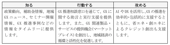 - - GXへの理解促進: 地域事業者がGXについて学ぶためのリソースを提供。