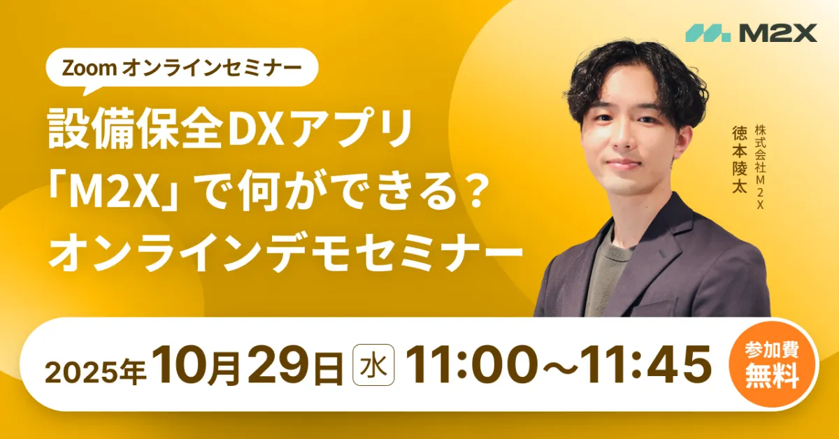 株式会社M2Xは、設備保全DXアプリ『M2X』を活用したオンラインデモセミナーを開催します。このセミナーでは、実際にM2Xを利用する企業の導入事例を交えながら、アプリの便利な機能や実際の画面を使ってその効果を紹介します。セミナーは2025年10月29日(水)の11:00から11:45までの予定です。