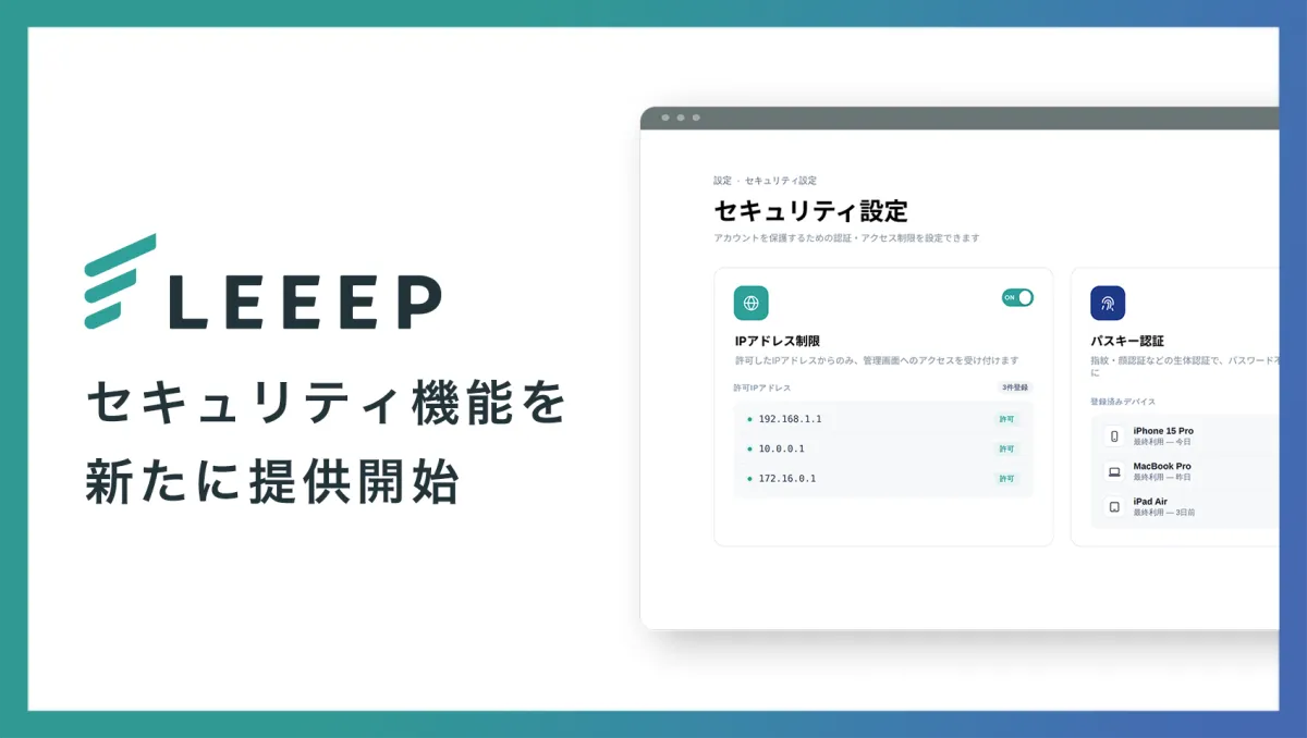 全体を通じて、LEEEPはパスキーログインとIPアドレス制限を活用することで、非常に強力なセキュリティ態勢を提供し、顧客体験の向上に寄与していきます。