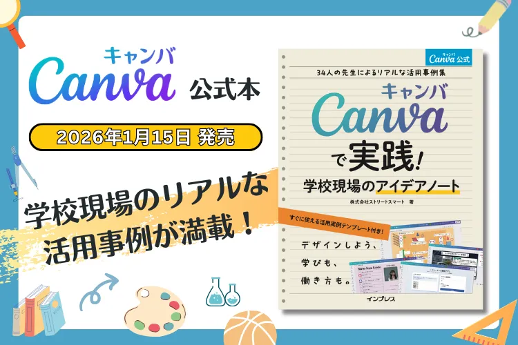 2026年1月15日に、株式会社ストリートスマートが手掛ける『Canvaで実践!学校現場のアイデアノート〜34人の先生によるリアルな活用事例集〜』がついに発売されます。本書は、教育現場でのCanva教育版の取り組みを具体的な事例を通じて紹介し、教師に向けた実用的なアイデアを凝縮したものです。