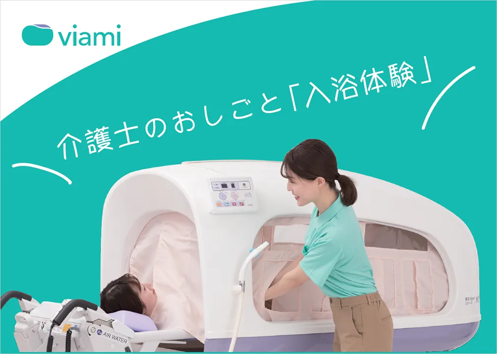 イベントのメイン、介護用特殊浴槽『美浴(びあみ)』を使った入浴体験では、参加者が介護現場で必要とされるスキルや心構えを学ぶことができます。特に小学生のお子さまは、実際に体験することで、介護士の仕事に対する理解を深め、将来の夢を考えるきっかけになることでしょう。