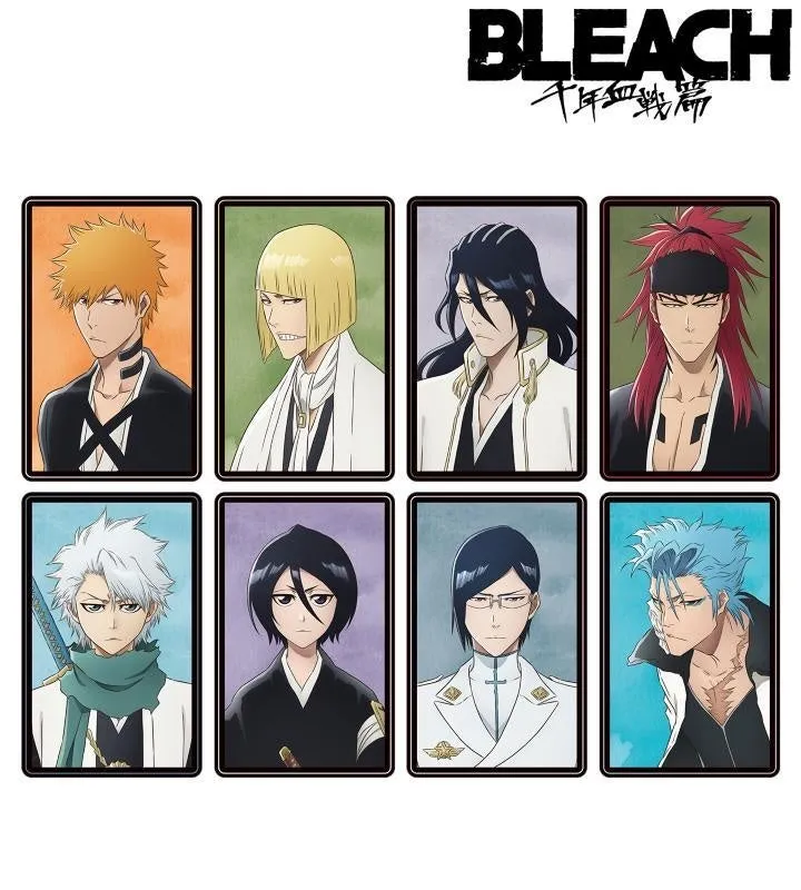 まずは、キャラクターたちの美麗イラストを印刷したトレーディングプラスチックカードです。収録キャラクターは、黒崎一護、平子真子、朽木白哉、阿散井恋次、日番谷冬獅郎、朽木ルキア、石田雨竜、グリムジョー・ジャガージャックの全8種。お部屋やデスク周りに飾ることで、アイドルのようにキャラクターと日常を共にすることができます。