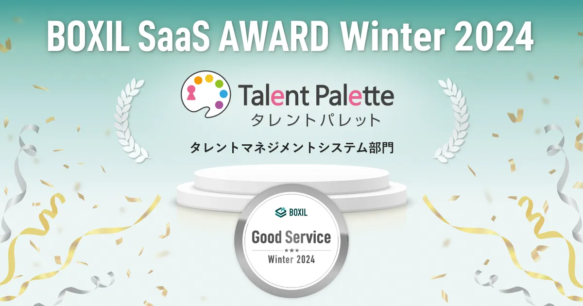 タレントマネジメントシステム「タレントパレット」が、2024年冬に行われた「BOXIL SaaS AWARD」でタレントマネジメントシステム部門において10期連続で「Good Service」を受賞しました。この受賞は、同システムが多くの企業から高い評価を得ている証です。