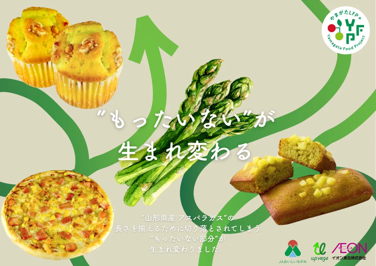山形県の株式会社グリーンエースは、イオン東北株式会社と連携し、地域の未利用アスパラガスを活用したベーカリー商品を開発しました。この取り組みは、2026年2月13日から期間限定で、山形県内の「マックスバリュ」4店舗で販売されます。