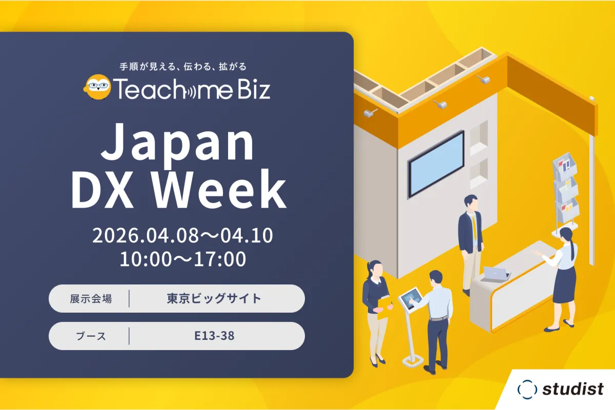 2026年4月8日から10日まで、東京ビッグサイトで開催される「Japan DX Week 春 2026」に、株式会社スタディストが出展します。ブースでは、プロの実演販売士が行うライブプレゼンテーションが随時行われ、AIを利用した「Teachme Biz」の最新機能を体験できます。