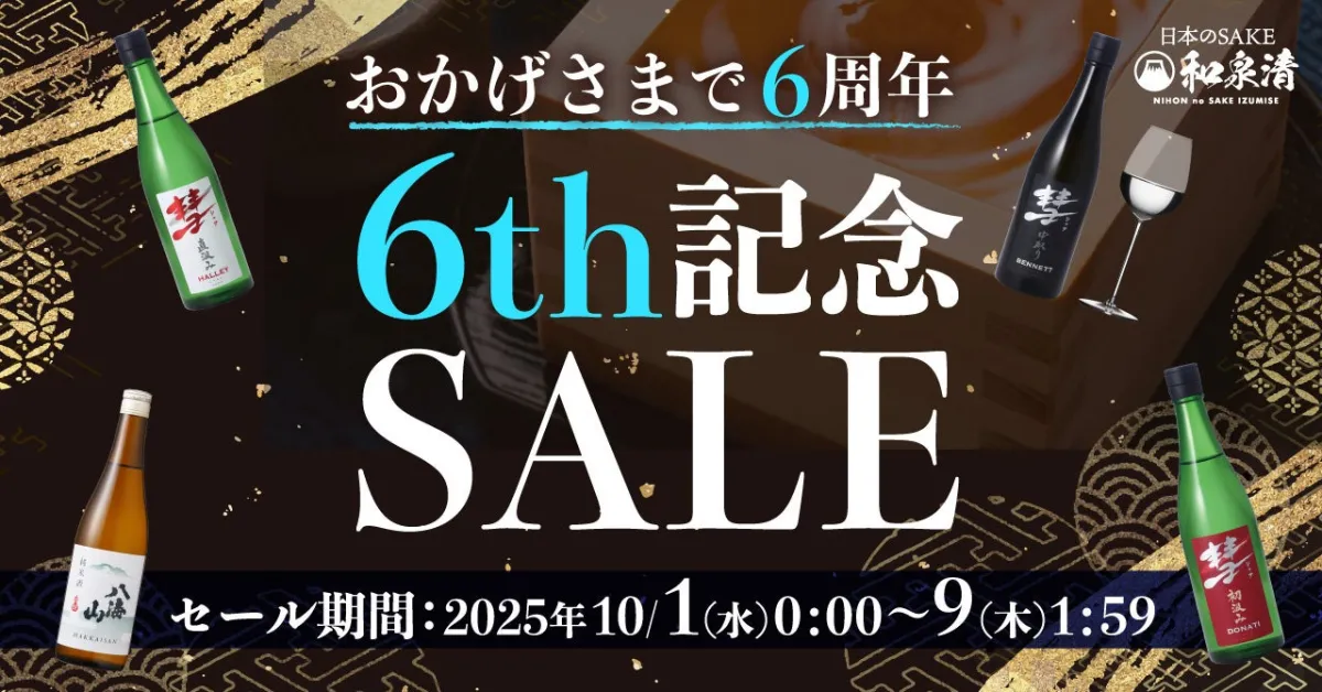 日本のSAKE和泉清 楽天市場店が2025年10月に6周年を迎えるにあたり、感謝の気持ちを込めた特別セールを開催します。このセールは2025年10月1日(水)から10月9日(木)1:59までの期間にわたり行われます。セールの詳細な内容を見ていきましょう。