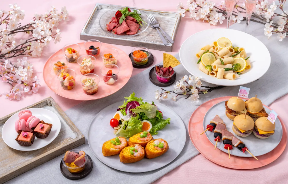 お花見プランでは、視覚的にも楽しめる商品が揃い、桜の塩漬けを使ったフィンガーケーキや、桜風味のマカロンが特徴です。オフィスにいながら花見気分を満喫できるのが魅力です。