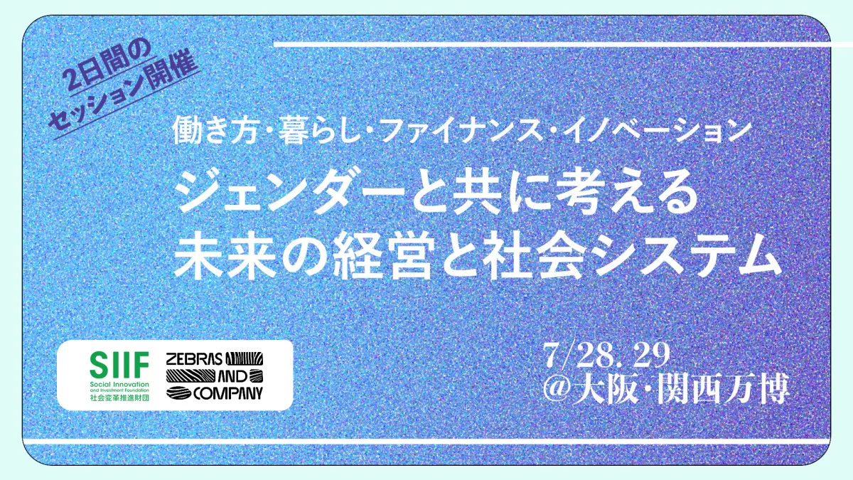 2025年の大阪・関西万博では、ウーマンズパビリオンにおいて、株式会社Zebras and Companyと一般財団法人社会変革推進財団が共に企画したトークイベントが開催されます。その名も『ジェンダーの視点から未来の経営と社会システムを考える』。このイベントは、2025年7月28日と29日の2日間にわたって行われ、私たちが来るべき未来についての重要な議論が展開される予定です。