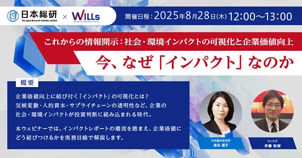 このセミナーに参加することで、参加者は社会や環境に対する企業のインパクトをより明確にし、それを企業価値として位置づけるための方法論を踏まえた広い視野を獲得できます。投資家やステークホルダーとの新たな対話を創造し、信頼関係を深めるためのヒントが得られるでしょう。