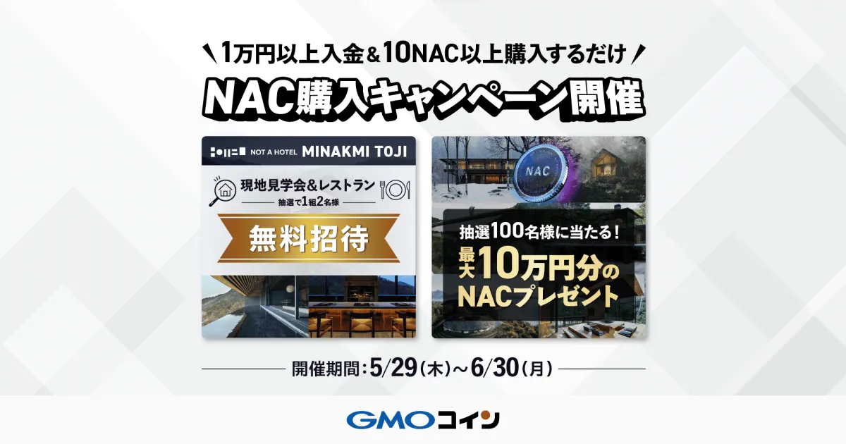 キャンペーンには二つの大きな特典があります。1つ目は、群馬県みなかみ町にある「NOT A HOTEL MINAKAMI TOJI」の現地見学会およびレストランへの無料招待です。このプランは、絶景が広がる山頂に位置した最新型の「現代の山小屋」にエントリーした2名様に提供されます。もしこの特典に興味がある方は、GMOコインの口座に1万円以上入金し、かつ10NAC以上の購入が必要です。この特典は、選ばれた方のみに与えられる夢のような体験です。