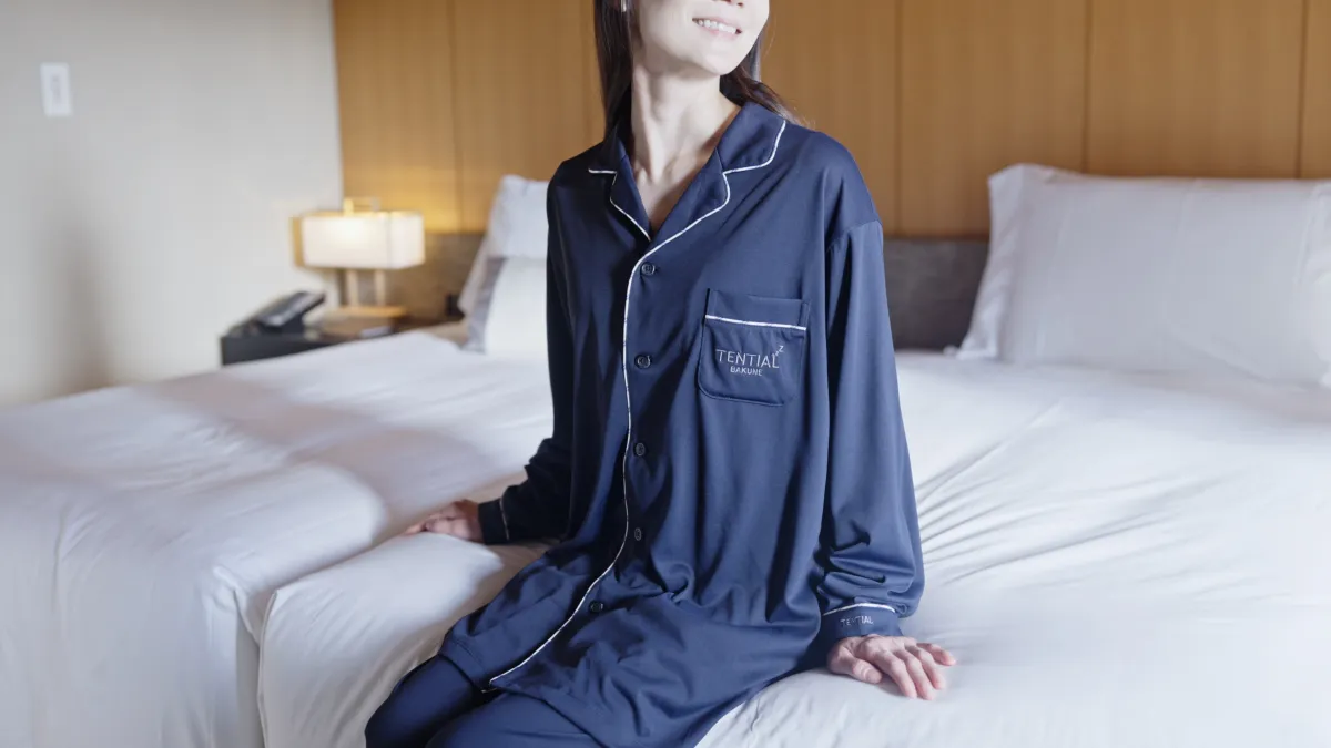 「YASURAGI-やすらぎ-」プランでは、BAKUNEのリカバリーウェアを体験でき、疲労を回復するためのパジャマと、最適な寝床環境を提供する掛け布団を使用します。特に、BAKUNEパジャマは、身体から発する遠赤外線を吸収し放出する特殊繊維「SELFLAME®」を使用しており、血行を促進し疲労回復効果が期待できます。