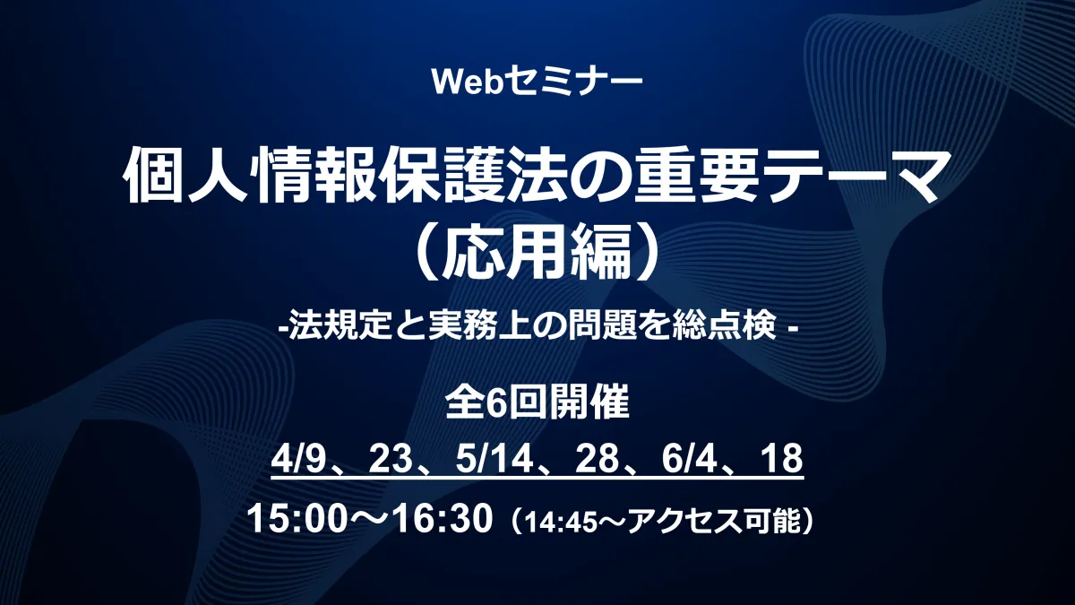 このセミナーでは、個人情報保護法に関する重要なテーマを幅広くカバーします。特に、法の規定に立脚した実務上の問題や他の法領域との関係性、さらには国際的な視点から見た個人情報保護について詳しく解説します。これにより、参加者は基礎的な概念から実務的な応用問題まで検討することができ、実際に役立つ知識を得ることができます。