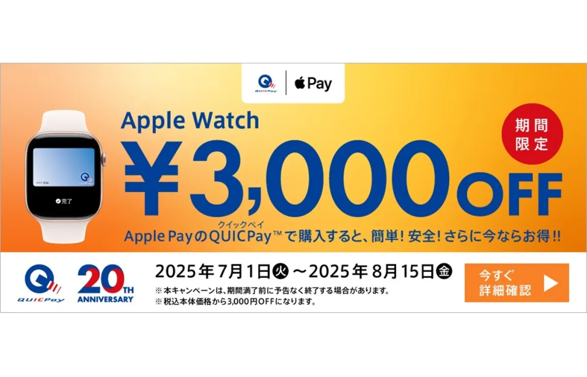 株式会社ジェーシービー(JCB)は、2025年の夏に特別なキャンペーンを実施します。このキャンペーンは、QUICPayを利用してApple Watchを購入することで、3,000円の割引が受けられるというものです。キャンペーン期間は、2025年7月1日(火)から2025年8月15日(金)までの約1ヶ月半にわたり、対象店舗での購入が対象となります。