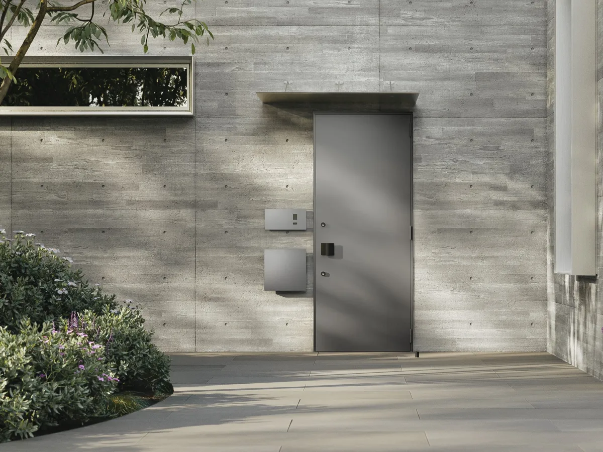 「ベリドール」の最大の特徴は、ドアの左右と上部の見付け幅を統一し、扉枠の存在感を抑えることで、まるで外壁に埋め込まれたかのような印象を生み出している点です。このデザインは、シンプルでありながらも洗練された雰囲気を醸し出し、住宅の外観に上質感をプラスします。