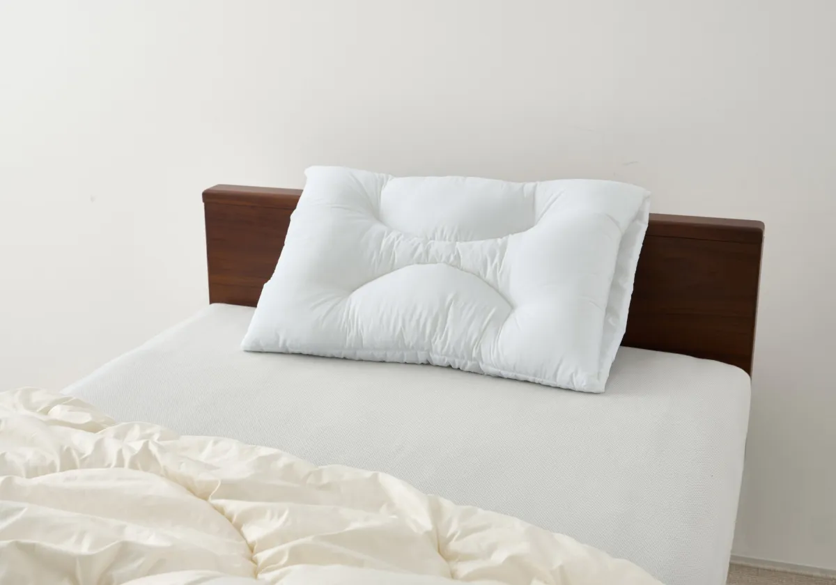 エアファイバー®は、体積の90%以上が空気で構成されているため、通気性に優れ、蒸れを感じることなく快適な睡眠をサポートします。加えて、ロフテーの独自技術である分割構造により、頭や首を包み込むようなフィット感が得られるのも特長です。この立体的なキルト構造は、仰向けでも横向きでも快適な寝姿勢を保つことを可能にし、リラックス効果を促進します。