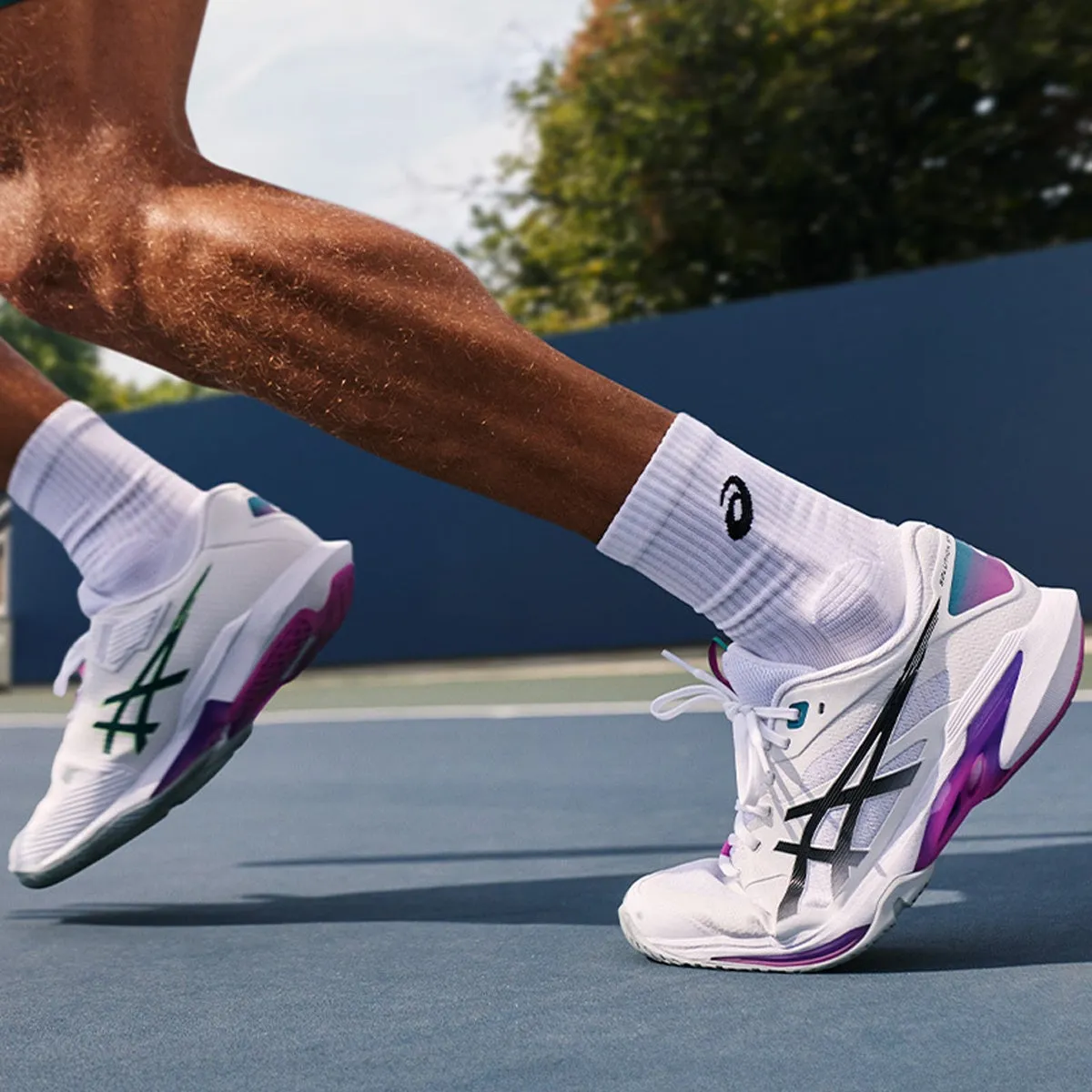 オールコート用とオムニ・クレーコート用が用意されており、靴底にはオリジナルのラバー素材「ASICSGRIP」を使用。これがコートでの優れたグリップ力を提供し、強力な蹴り出しをサポートします。