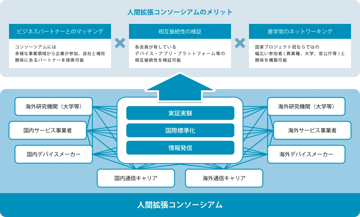 本コンソーシアムは、内閣府が推進する国家プロジェクト「戦略的イノベーション創造プログラム(SIP)」の一環として設立されました。様々な企業や学術界の専門家がタッグを組み、人間拡張技術に関連するアプリケーション、デバイス、プラットフォームの検証を行い、国際的な標準化を進めることを目指しています。地域社会のニーズに基づいたシンポジウムの開催やホワイトペーパーの発行など、情報発信にも力を入れていく予定です。