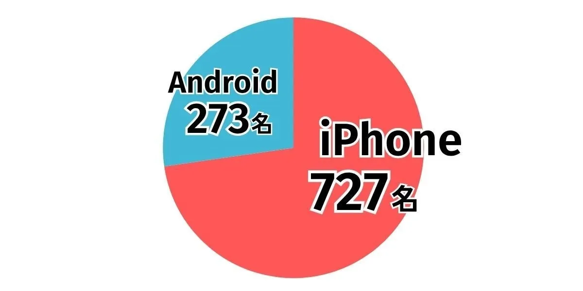 調査によると、現在のスマートフォン利用者の中で、iPhoneを使用しているのが727名(72.7%)で、Androidユーザー273名(27.3%)を大きく上回っています。この結果は、多くのユーザーがAppleの製品に対して強い支持を寄せていることを示しています。