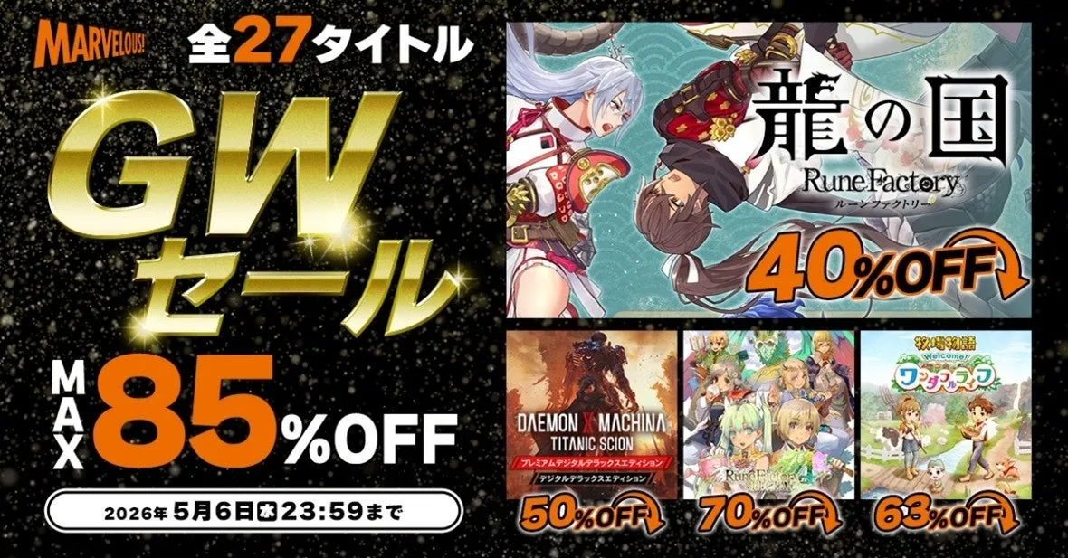 株式会社マーベラスは、ニンテンドーeショップおよびPlayStation Storeにて「マーベラスGWセール」を開催しています。このセールは注目の人気ゲームをお得に手に入れる絶好のチャンスです!