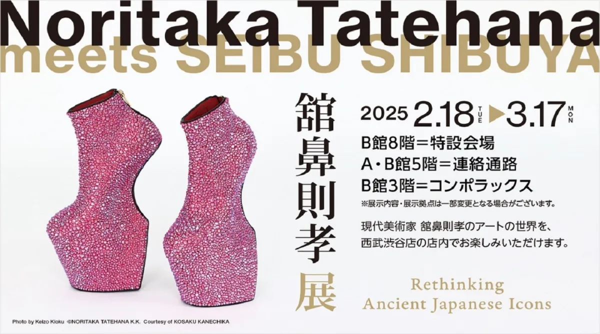西武渋谷店にて、現代美術家の舘鼻則孝による展覧会が2025年2月18日から3月17日までの間開催されます。この展覧会では彼の代表作である「Heel-less Shoes」をはじめ、さまざまな彫刻や絵画作品が展示され、彼の独特のアートを間近に楽しむことができます。