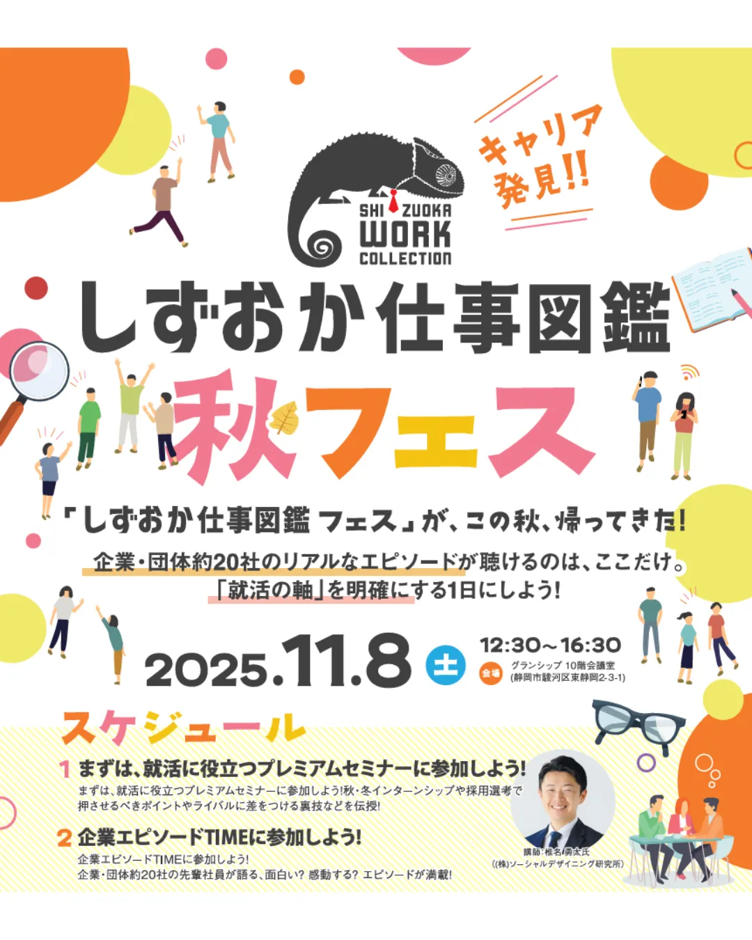 株式会社静岡新聞社が主催する「しずおか仕事図鑑 秋フェス」は、2025年11月8日(土)、静岡市のグランシップで開催されます。このイベントは、2027年以降に卒業予定の学生を対象に、静岡県内の優良企業約20社が集結するキャリアイベントです。このフェスは、学生たちが企業のリアルなエピソードを通じて就活の軸を定め、自身の価値観や働くことの魅力を実感するための絶好の機会です。