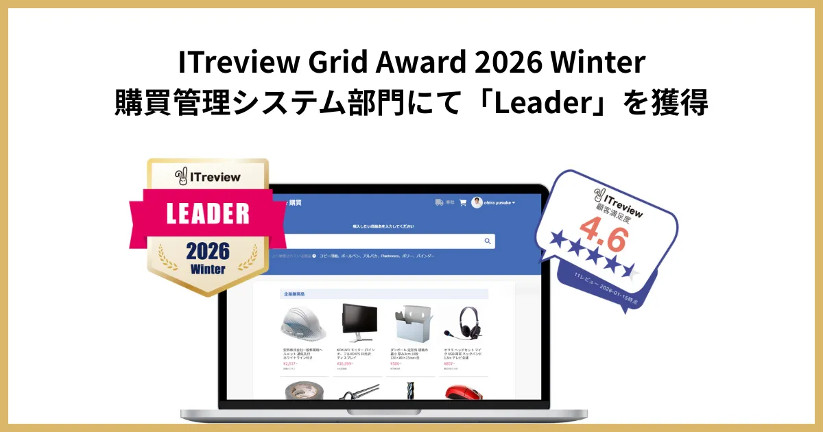 ITreviewはリアルユーザーからの評判を集め、製品の認知度や顧客満足度を測る独自の評価システム「ITreview Grid」を設け、そこから最も支持を得た製品を「Leader」として表彰しています。2026年1月に発表された賞では、約15万件のレビューを元に審査が行われており、リーナーの購買管理システムは、出色の評価を受けました。
