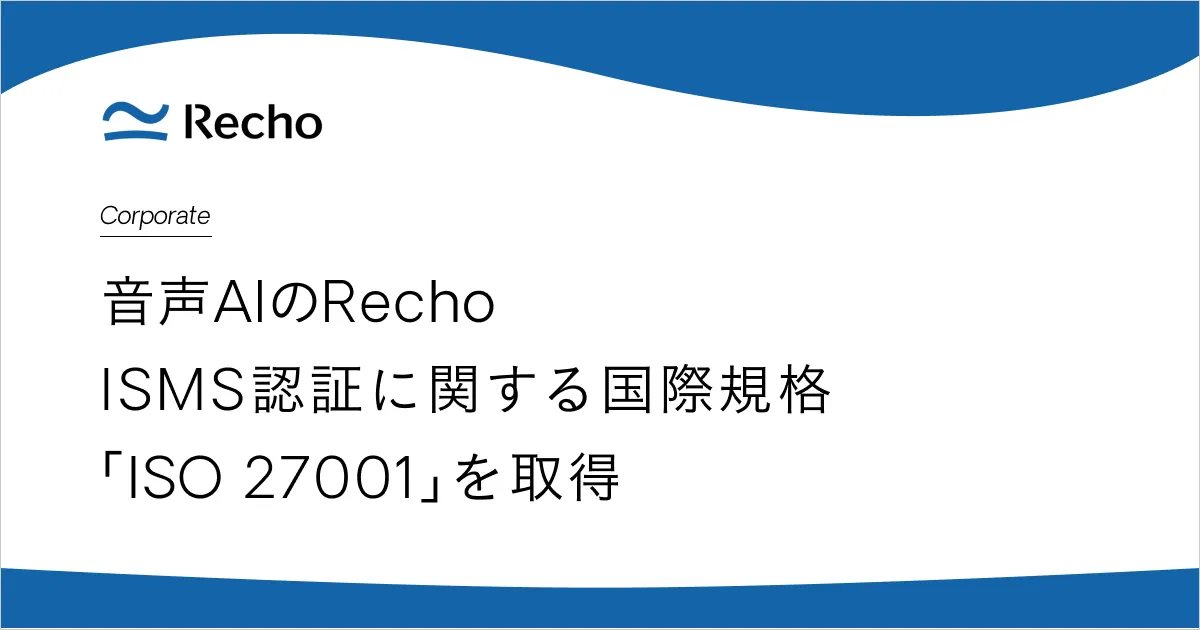 株式会社Recho(レコー)は、情報セキュリティマネジメントシステム(ISMS)の国際標準規格である「ISO 27001」を取得したと発表しました。この認証を通じて、同社は顧客により安全で信頼性の高いサービスを提供するための体制を構築していく方針です。