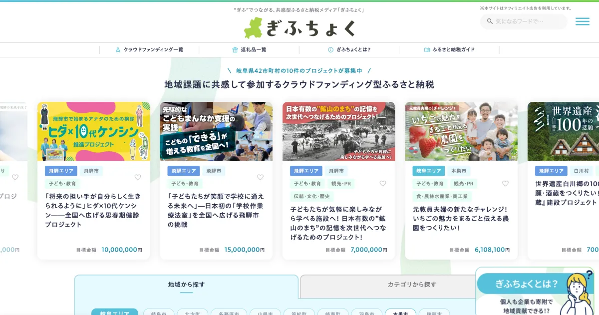 岐阜県のふるさと納税を中心に情報提供を行う『ぎふちょく®』が、この度全面的なサイトリニューアルを実施しました。運営するのは株式会社リーピー、カンダまちおこし株式会社、そして株式会社ヒダカラです。このリニューアルによって、岐阜県内の全ての自治体が提供する返礼品の情報や、シビック・クラウドファンディングを基としたふるさと納税プロジェクトの情報を一元的に確認できるようになります。