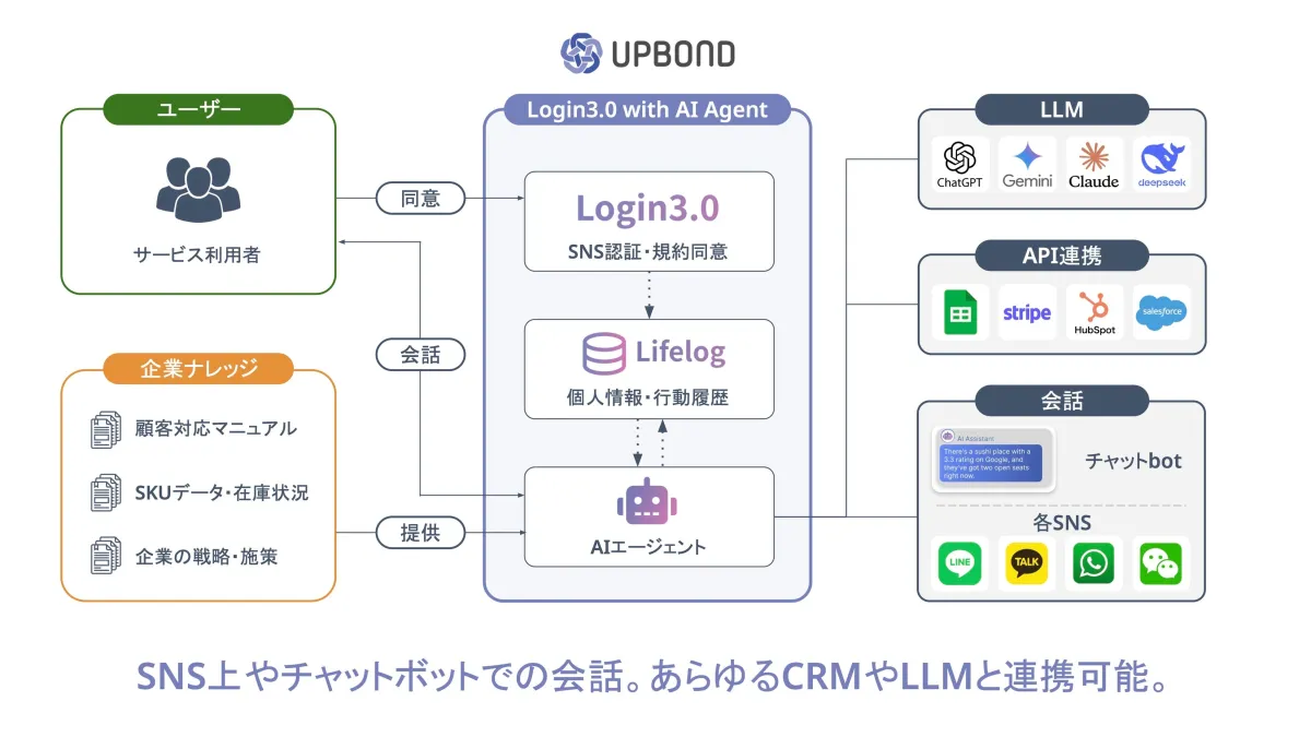 株式会社UPBOND(本社:東京都)は、ユーザーの行動履歴や興味に基づく新たなAIエージェント『Login3.0 with AI Agent』を発表しました。このサービスは、デジタル社会においてユーザー自身のライフログをパーソナライズされた支援に活用することを目指しています。