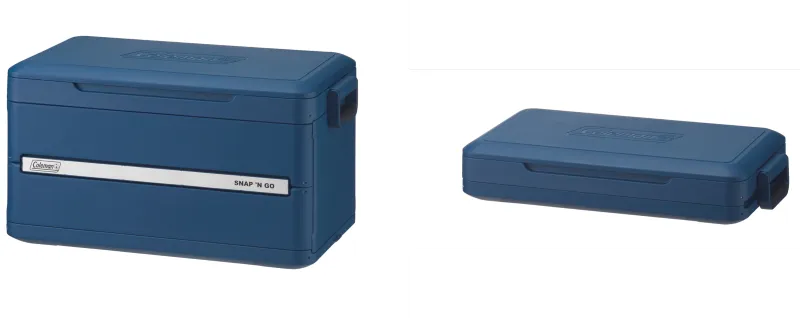 「スナップアンドゴークーラー」は、実にコールマン史上初となる折りたたみ式のハードクーラーです。使用後、ハンドルを持ち上げるだけで簡単に展開・折りたたみが可能で、その大きさを約1/3に圧縮できます。これは、収納時にわずか約11cmの高さにまで縮むという嬉しい特長。自宅や車の中でも場所を取らず、非常に実用的です。