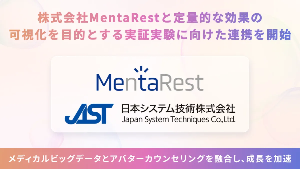 MentaRest社と連携することで、JAST社はこれまでの医療分野における蓄積と分析技術を活用し、企業メンタルヘルス対策の新たな可能性を探求します。特に、従業員のストレス軽減や生産性向上に向けた具体的効果の実証を進めることで、安心してデジタルメンタルヘルスサービスを導入できる環境を整えることが目標です。