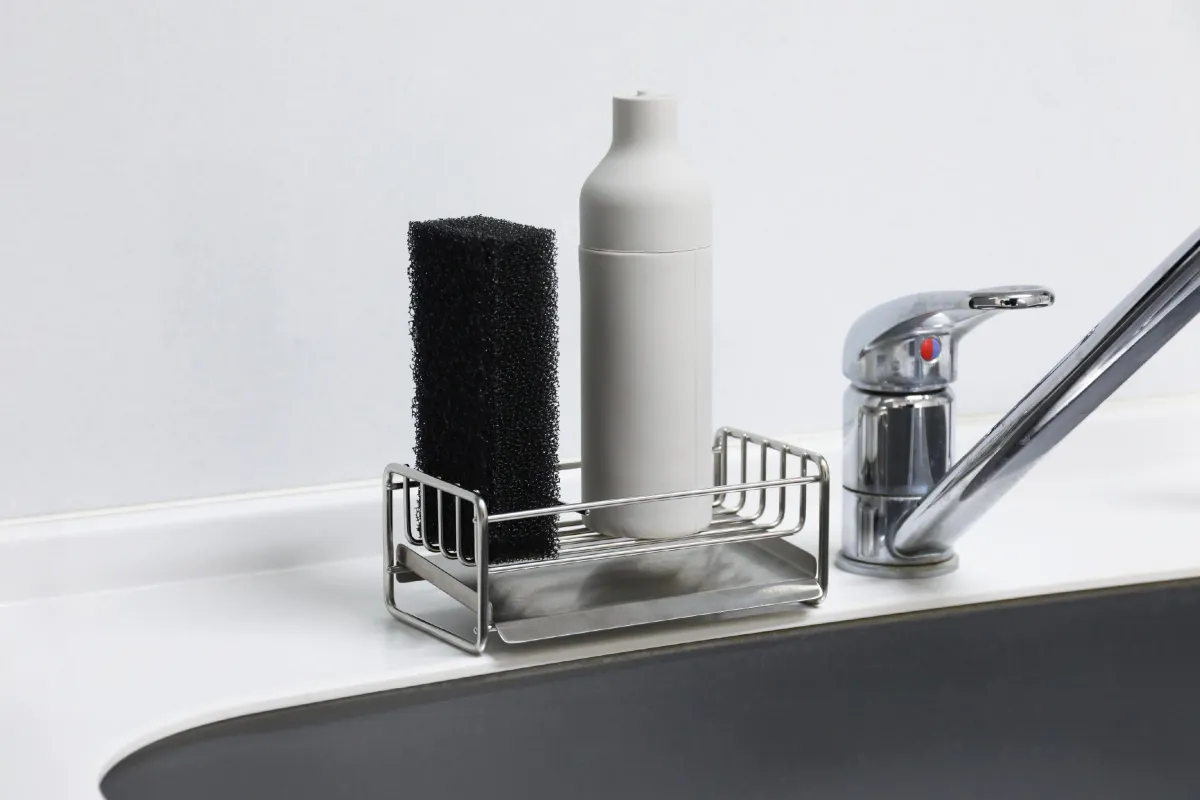 日常的に使用するスポンジ。どこに置くのがベストなのか、生活の中で悩むことがしばしばあります。おそらく、シンクの角や蛇口の根元など、手軽に置ける場所に“何となく”収まっている方も多いのではないでしょうか。そんな時、困るのが水が溜まり乾きにくく、雑菌の繁殖を引き起こすという問題です。
