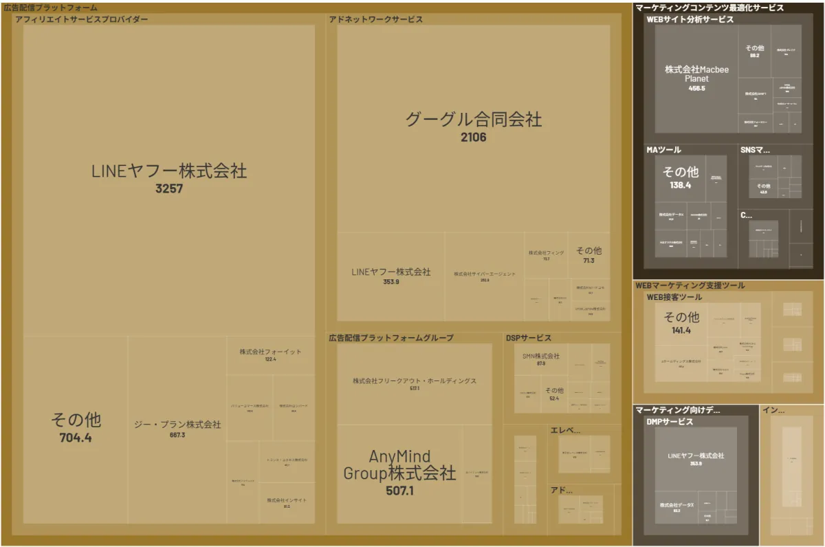 このようにカオスマップを通じて、国内のMarTech市場における企業のポジショニングや競合状況を把握することができます。