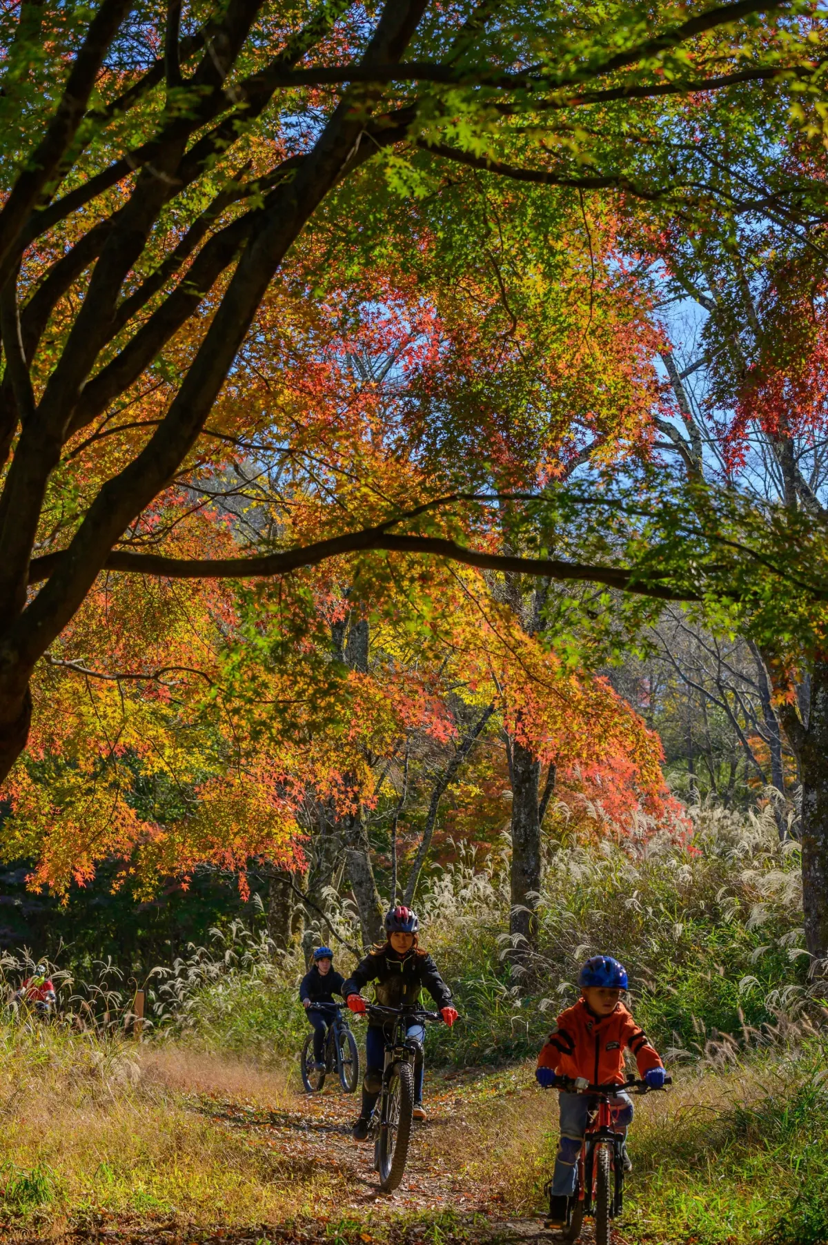 - - 麦坂道ライディング: その後、歴史あふれる「麦坂道」をMTBで走行。途中には歴史的な石仏や段々畑が点在し、自然と歴史に触れることができます。