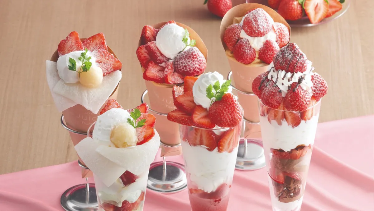 - - 主なメニュー:贅沢いちごパフェ、いちご大福クレープほか。