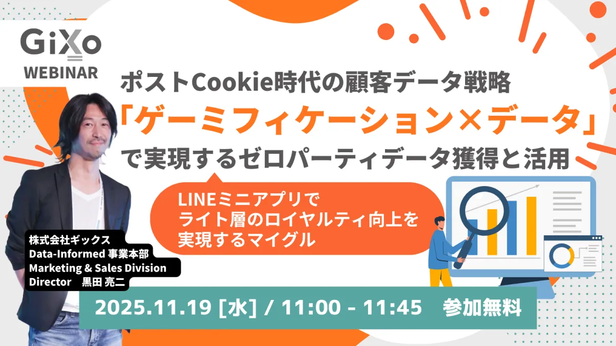 株式会社ギックスが提供するウェビナーは、特にマーケティング責任者やデータ活用に興味のある方にとって、見逃せない情報源となります。2025年11月19日(水)に開催されるこのセミナーでは、「ポストCookie時代の顧客データ戦略『ゲーミフィケーション×データ』で実現するゼロパーティデータ獲得と活用」というテーマで、企業がどのように顧客ロイヤリティを強化できるかを解説します。