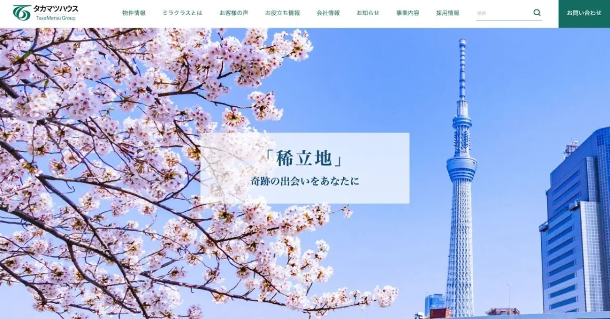 リニューアル後のホームページには、特に厳選した物件を紹介する新コンテンツ「稀立地」が追加されている。この「稀立地」は、希少性、利便性、住環境のバランスに重点を置いており、これらを兼ね備えた場所こそが生活を豊かにする要素として捉えられている。タカマツハウスは、約70名の営業担当者が月間2000~2500件の土地情報を収集しており、その中から約20~30件を厳選することで、顧客に対して価値ある資産を提供していくという目標を設定している。