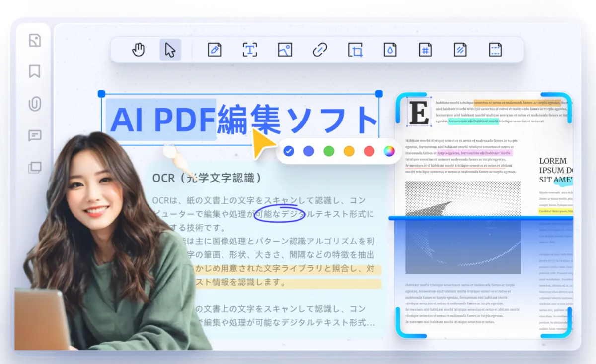 - - PDF編集:テキストの追加・削除やフォント変更が可能で、編集がWord文書を操作するかのように簡単。画像やリンクの編集も簡潔です。