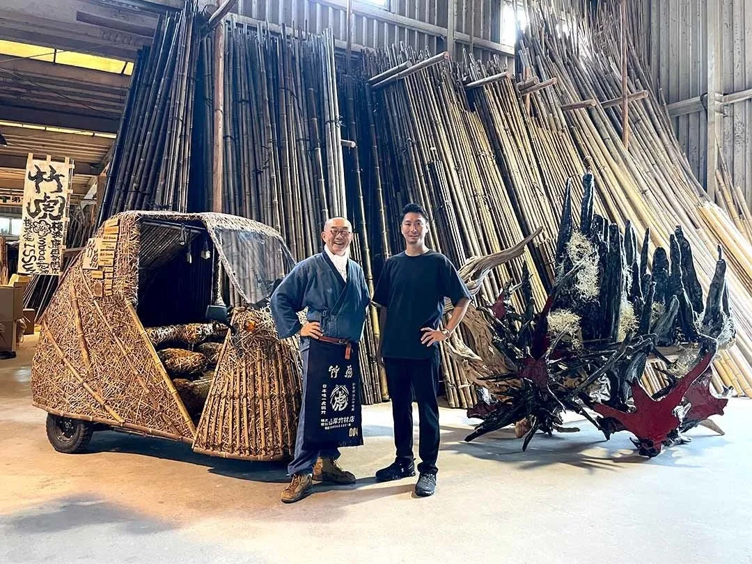 インスタレーションのテーマは「虎×龍」。これは、竹虎が特別に製作した虎竹電気自動車「竹トラッカー」に乗車しながら構想を深めるという独自の手法で進められました。このような異色のコラボレーションが、竹の魅力を引き出す新たなアート作品の誕生へとつながっています。