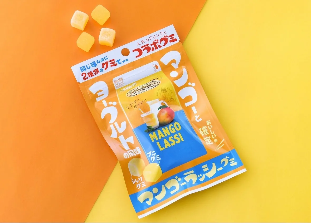 異色のコラボ実現!話題のマンゴーラッシーグミ新発売!2つの食感が楽しめる新感覚グミ!