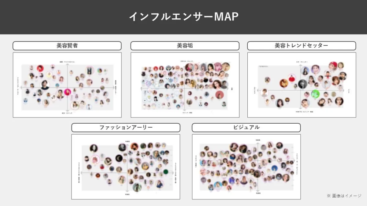 トレンダーズは、10年以上にわたる実績を背景に、最新のAI技術を活用したインフルエンサー選定の新しい手法を提供します。「インフルエンサーMAP」は、SNSにおける10万人以上のインフルエンサーに関するデータをもとに、特に美容分野において影響力を持つインフルエンサーを「美容賢者」や「ファッションアーリー」など、5つのカテゴリに大別しています。これにより、企業はより的確なインフルエンサーを選定することが可能になるのです。