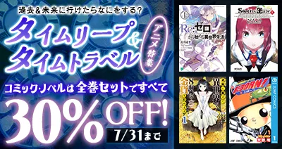 今回は、以下のような数々のタイムリープ&タイムトラベル作品が特別価格で登場します。