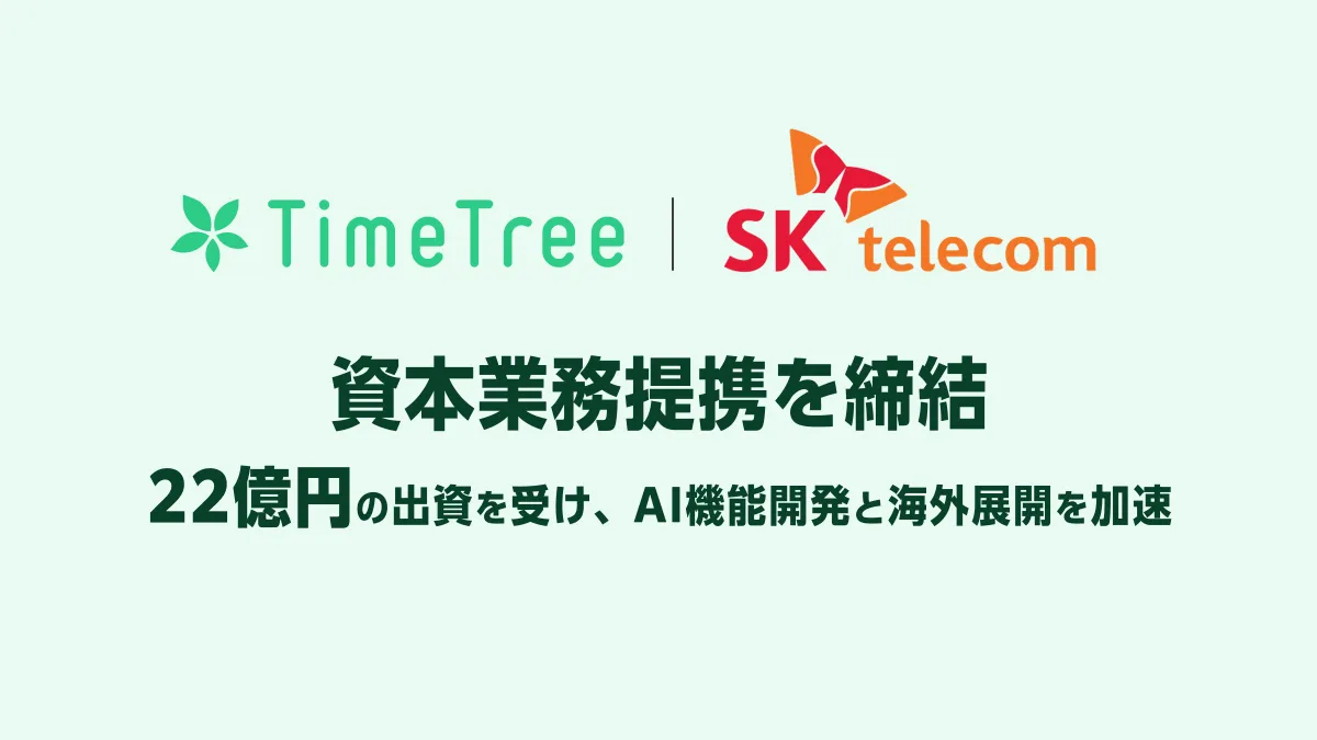 株式会社TimeTreeは、韓国の通信業界の大手SK Telecomとの間で資本業務提携を結びました。この提携により、TimeTreeはSK Telecomから約22億円の出資を受け、AIを活用した新たな機能の開発と海外展開を強力に推進していくことを目指します。