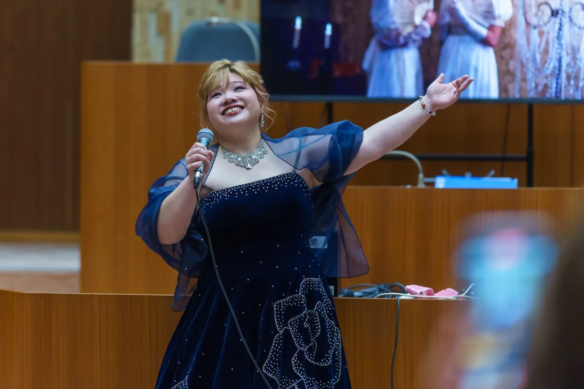 コンサートの幕を閉じる最後のプログラムでは、出演者全員が登場し、観客や議員たちと一緒に歌を歌う場面が展開されました。その瞬間、ホール全体が感動に包まれ、心温まるフィナーレを迎えました。来場者たちは一体感を味わい、明るい笑顔を浮かべていました。