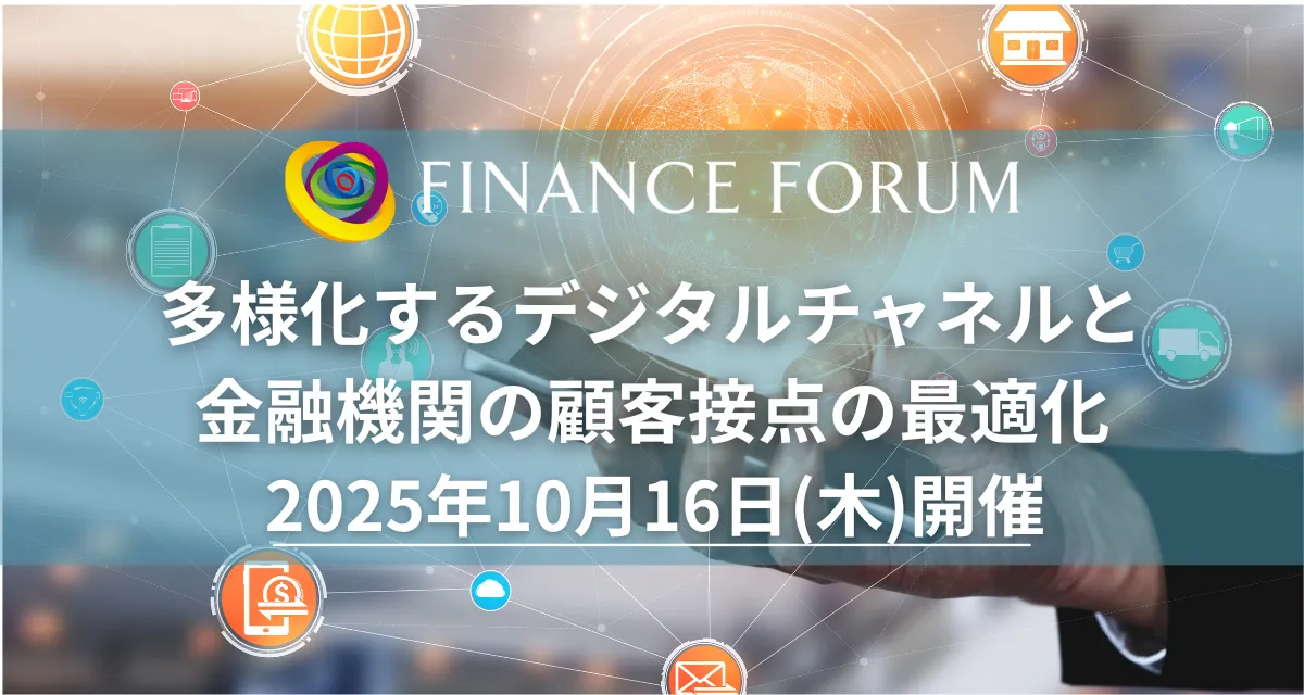 株式会社セミナーインフォが、2025年10月16日(木)に「FINANCE FORUM 多様化するデジタルチャネルと金融機関の顧客接点の最適化」を開催します。