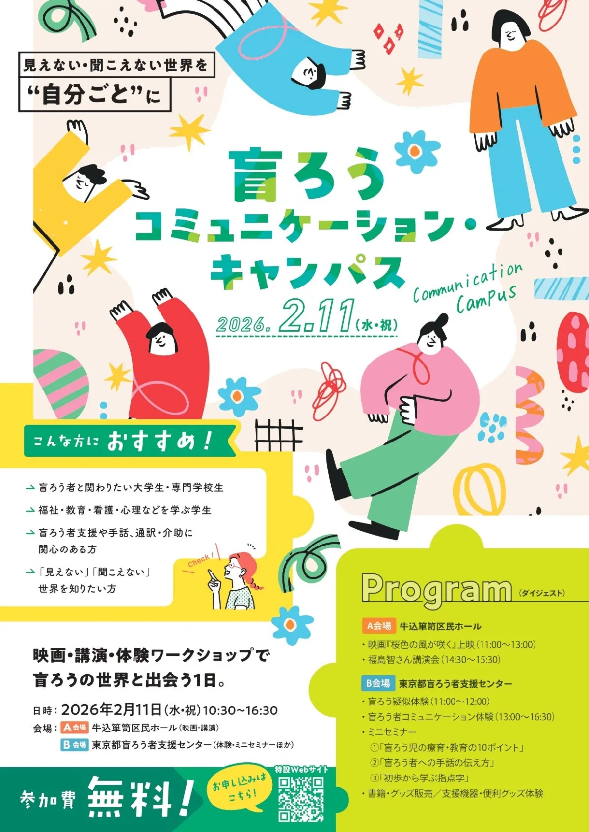 2026年2月11日(水・祝)、東京都新宿区において、認定NPO法人東京盲ろう者友の会による「盲ろうコミュニケーション・キャンパス」が開催されます。このイベントは、視覚と聴覚の両方に障害を持つ「盲ろう者」という特異な環境にいる人々の世界を、映画、講演、体験ワークショップを通して深く学ぶことを目的としています。