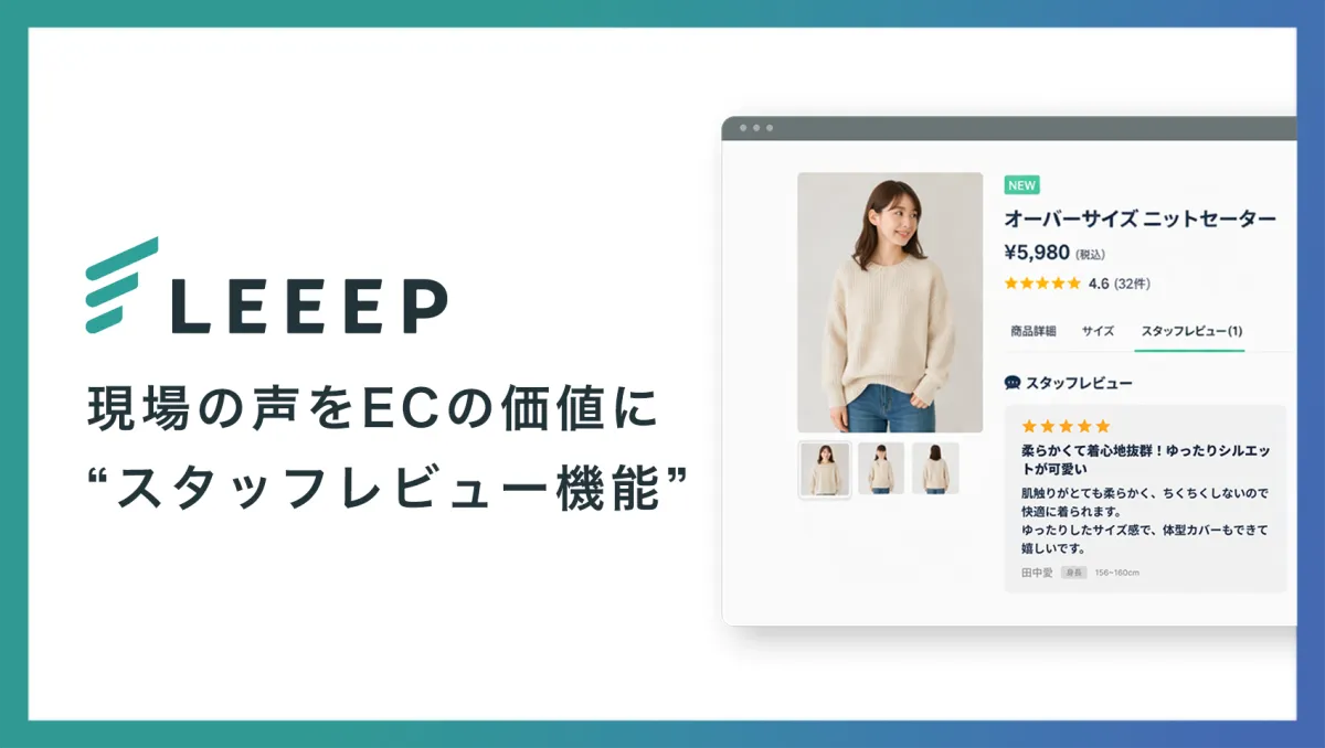 このような背景を受け、LEEEPはスタッフレビュー機能の提供を開始しました。これにより、企業はスタッフが得た現場での知見を基にした具体的な情報を顧客に提供し、より信頼感を持って商品選びをしてもらう機会を提供します。