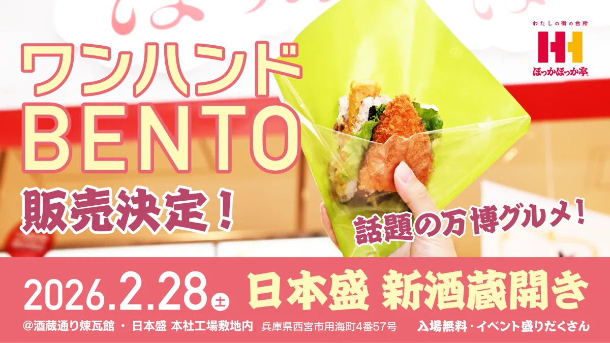 2026年2月28日(土)、兵庫県西宮市で開催される「日本盛 新酒蔵開き」に、持ち帰り弁当のパイオニアである「株式会社ほっかほっか亭総本部」が初めて出展します。特に注目なのは、昨年の大阪・関西万博で話題となった「ワンハンドBENTO™」です。この新しい形の弁当は、Z世代や子育て中の家族に非常に人気が高まっています。